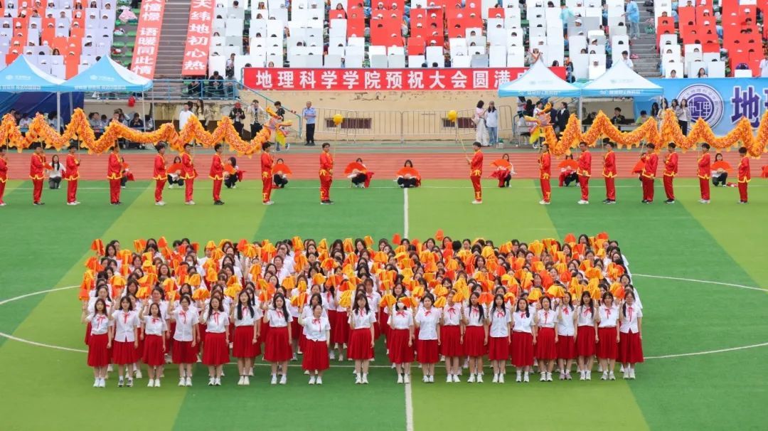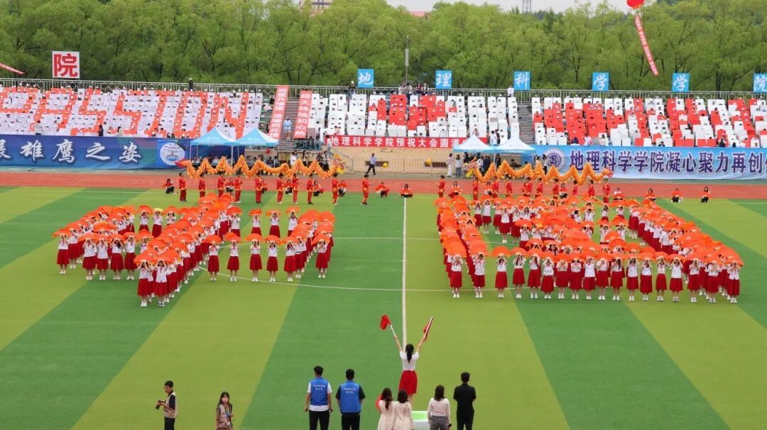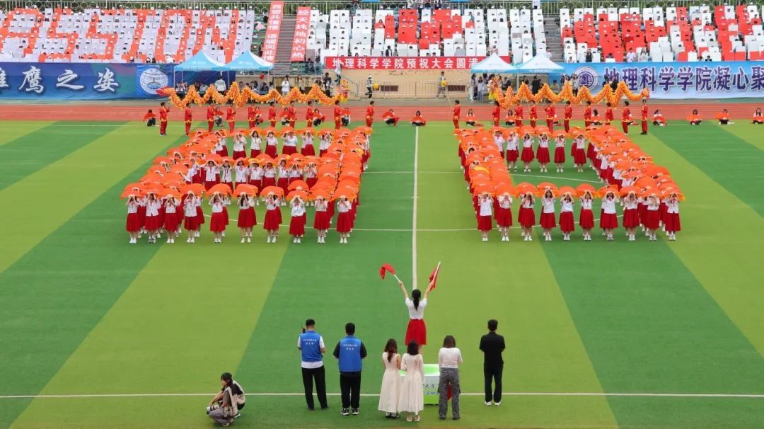 随着“三、二、一”倒计时,绿茵场瞬间化作流动的史诗。方阵层叠如历史长河奔涌,百柄红扇舞动似文明薪火燃烧。传统与现代交融,尽显守正创新、同心同德的时代气魄。聚散开合间,玄妙八卦阵图显现,八卦轮转,乾坤开阖,演绎“天地合而万物生”的古老智慧。这千年文脉与时代活力的完美共鸣,展现了文学院学子和合包容、继往开来的传承担当,诠释着超越自我、顽强拼搏的青春力量。