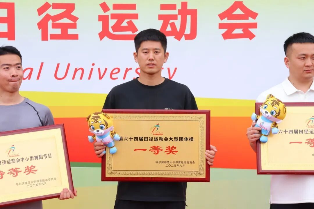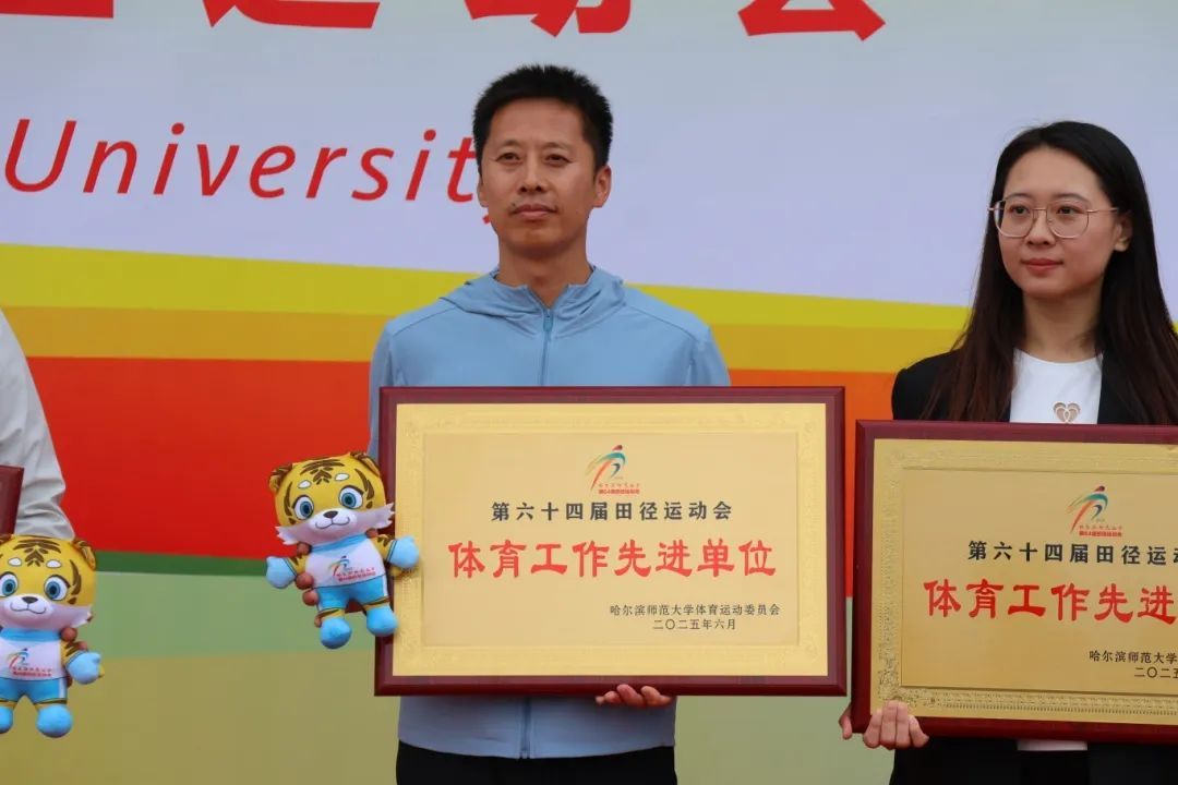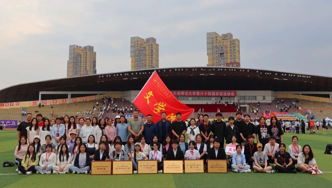 在文学院师生的共同努力下,我院在哈尔滨师范大学第六十四届田径运动会取得运动会优秀组织奖、体育工作先进单位、教工团体总分第三名,学生甲组团体总分第六名、学生女子团体总分第四名、大型团体操一等奖等多项荣誉。