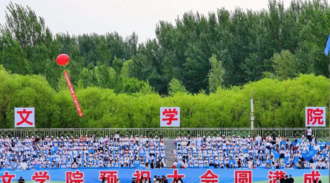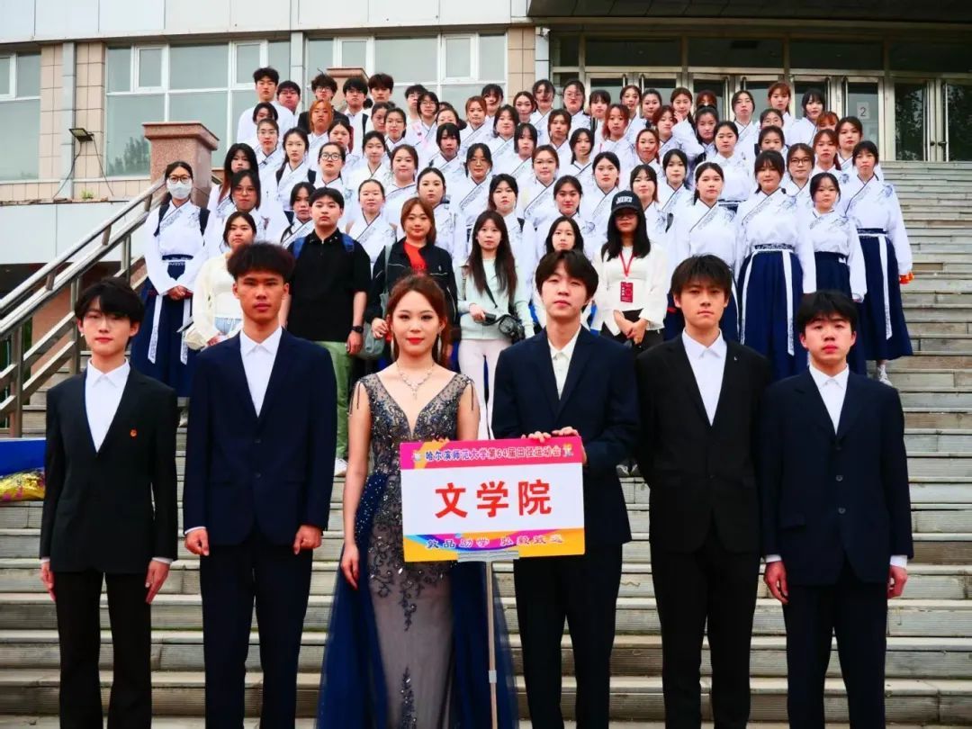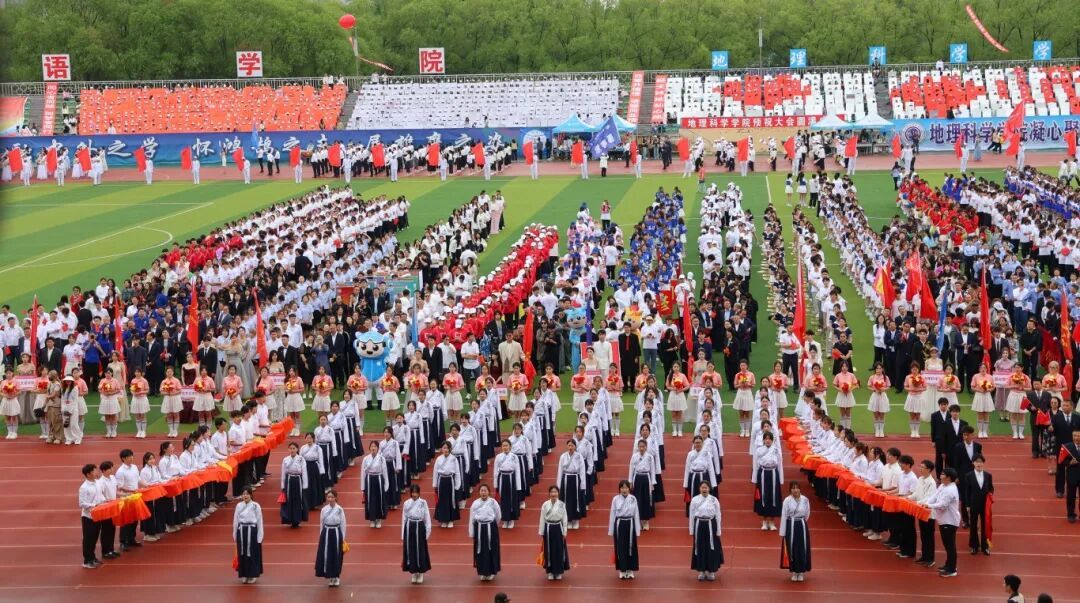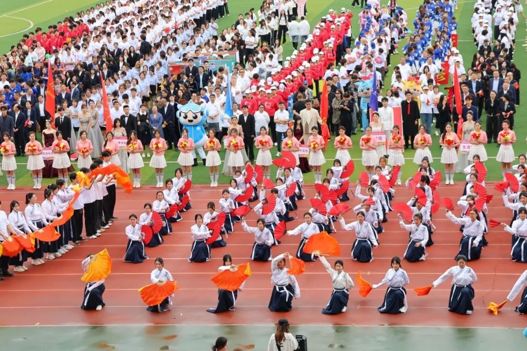 墨海扬帆承文脉,文心筑梦展风华。文学院师生方阵迈着坚定有力的步伐,踏出铿锵节奏,用响彻天际的口号凝聚奋进力量。声震寰宇,弦音激越。前导队在《雪龙吟》的音乐中翩然起舞,衣袂翻卷似笔走龙蛇,扇面轻抖若开卷惊风。学子如惊鸿振翅,以刚柔身姿泼墨运动场,绘就文心与热血交融的青春长卷。