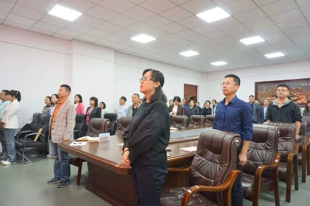 大会在雄壮的《国歌》中拉开序幕,全体参会教职工肃然起立、齐声高唱。庄严的国歌奏响了大会的序曲,也凝聚起在场每一位教育工作者的责任与担当。