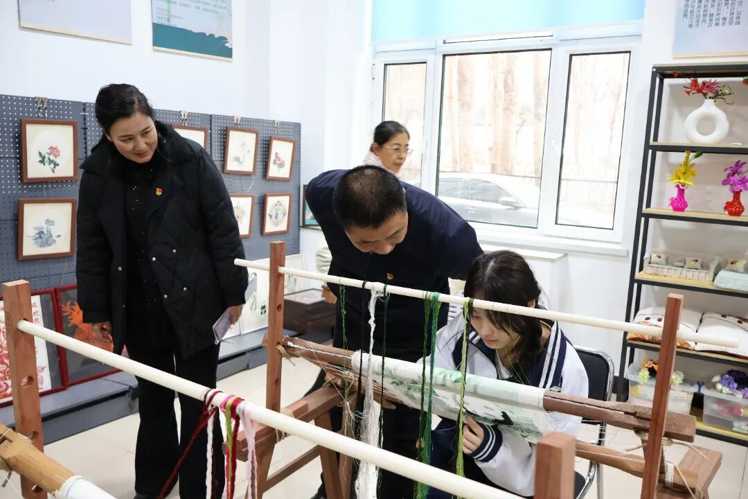 活动期间,在阿城区职业技术教育中心学校校长的带领下,参与人员先后参观该校党建文化阵地与非遗特色教室。在党建建设参观环节,通过实地察看、资料查阅、交流问询等方式,详细了解该校在党建品牌打造、组织生活规范、党员教育管理等方面的宝贵经验与创新做法,为双方党建工作互学互鉴提供实践参考;在非遗教室参观过程中,大家近距离感受传统文化的魅力与非遗传承的教育价值,为后续探索“党建+文化传承”融合发展路径拓宽思路。