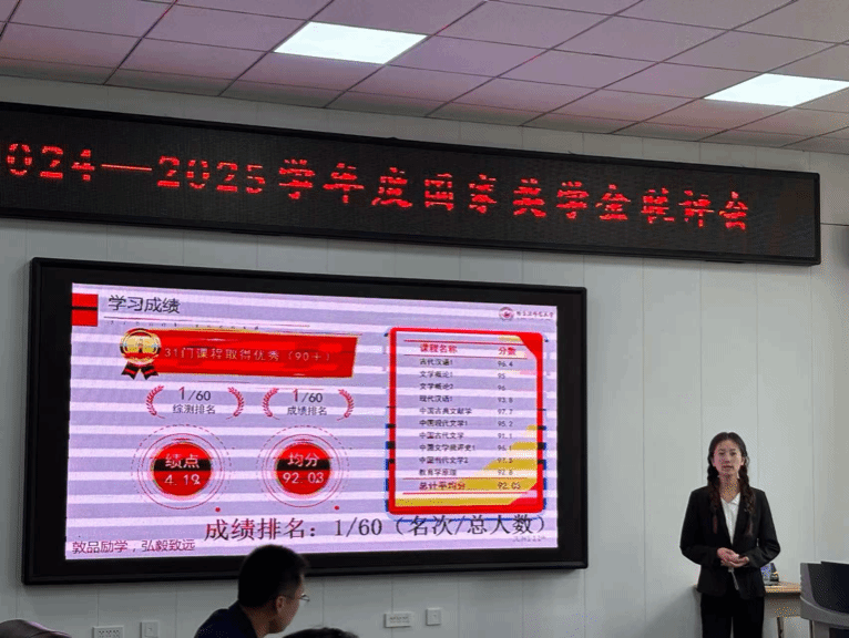 本次国家奖学金联评会议共有17名符合参评条件的学生参与现场展示汇报。他们主要从思想素质、学习工作、竞赛活动、科技创新、社会实践、志愿服务等方面展开全面阐述,充分展现出较强的个人素质、良好的学习成绩与突出的综合能力。学院国家奖学金评审工作小组依据参评学生提交的相关材料、现场展示情况,结合学生间互评开展评选,综合确定拟推荐国家奖学金人选,并提交学院党政联席会议研究审议通过,拟确定文学院2024-2025学年国家奖学金推荐人选共7人,分别是2022级汉语言文学专业蒋艺萌、2022级汉语国际教育专业国熙茹、2023级汉语言文学(行知)专业薄昕然、2023级汉语国际教育专业满思彤、2023级秘书学专业曹琪雅、2024级汉语国际教育专业尹卓然和2024级秘书学专业高梦琦;备选1人为2022级汉语言文学专业杨乙同学。