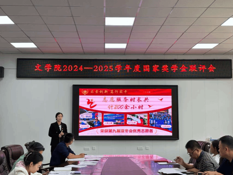 根据学校下发的《关于做好2025年本科生国家奖学金评审工作的通知》有关要求,文学院于9月23日上午在人文楼206室召开了2024-2025学年本科生国家奖学金联评会议。文学院国家奖学金评审工作领导小组全体成员参加,会议由文学院党委副书记吕红伟主持。