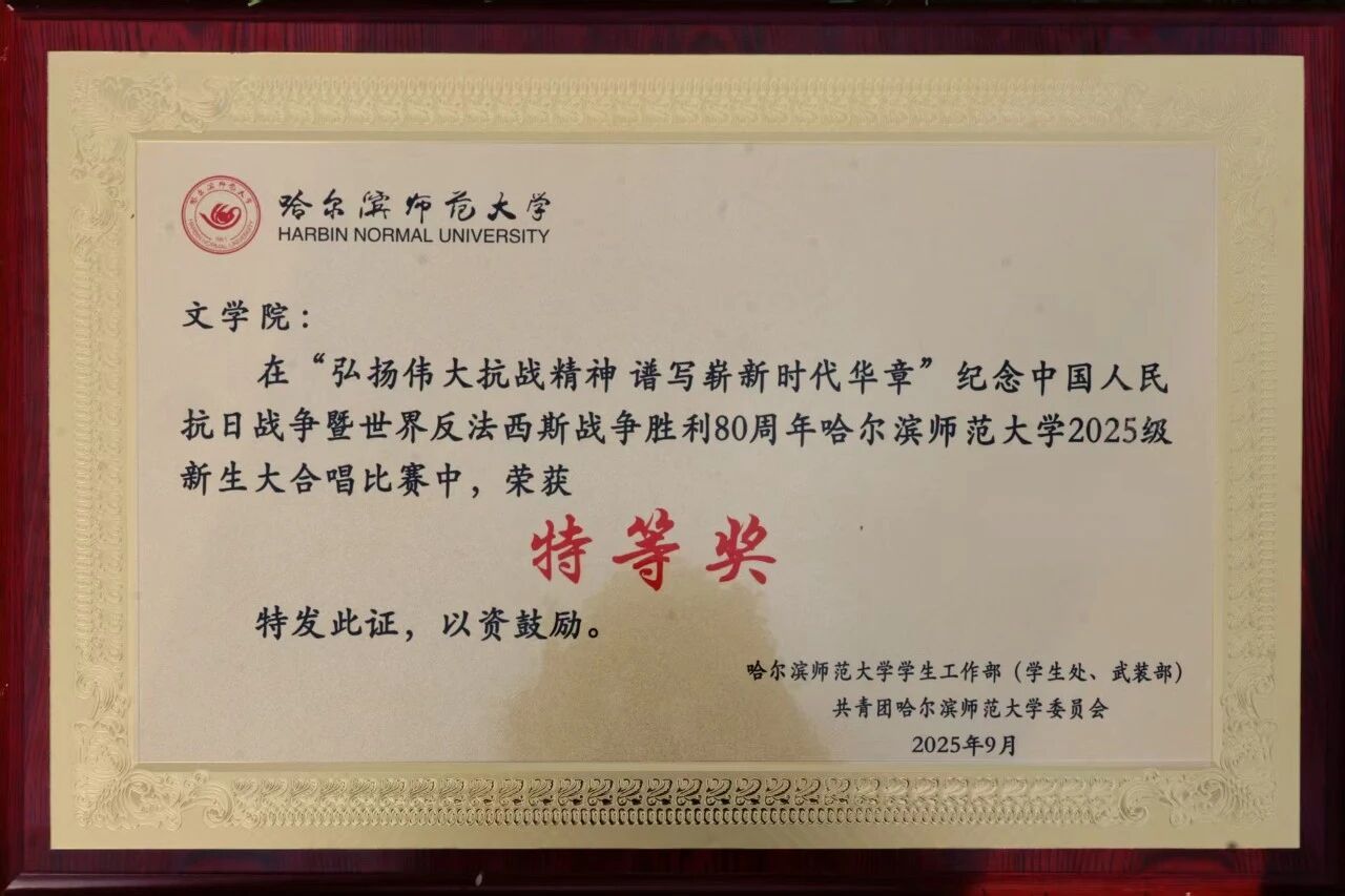 文学院荣获“弘扬伟大抗战精神,谱写崭新时代华章”2025级新生大合唱比赛特等奖