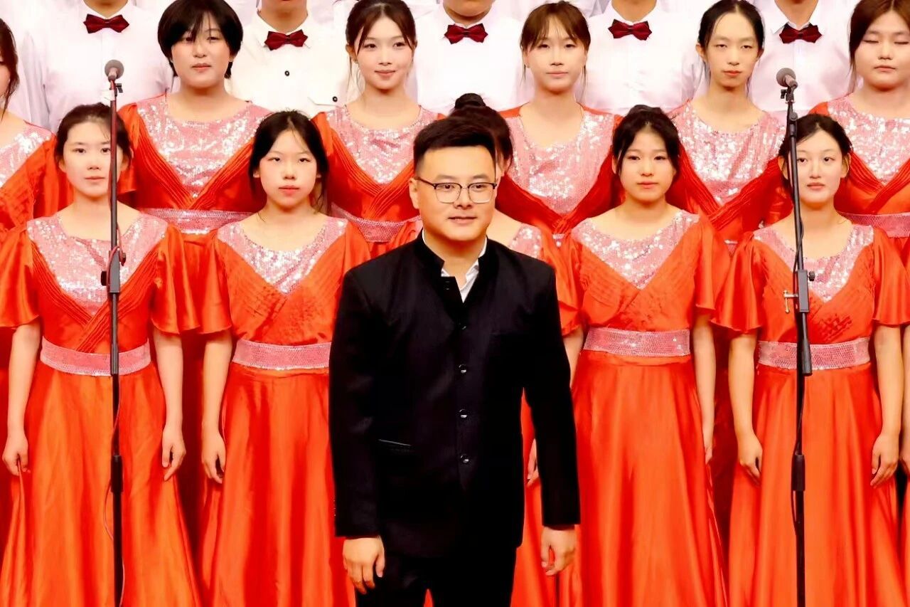 比赛现场庄重热烈、灯光璀璨,文学院参赛同学身着统一服装,精神抖擞、意气风发,展现出昂扬向上的青春风貌。在文学院团委书记、2025级辅导员刘建鹏老师的指挥下,2025级新生以饱满的热情和清澈的声线,将《歌唱祖国》的壮阔豪情与《黄河大合唱》的磅礴力量演绎得淋漓尽致,传递出中华民族不屈的历史回响,焕发出震撼人心的集体力量。