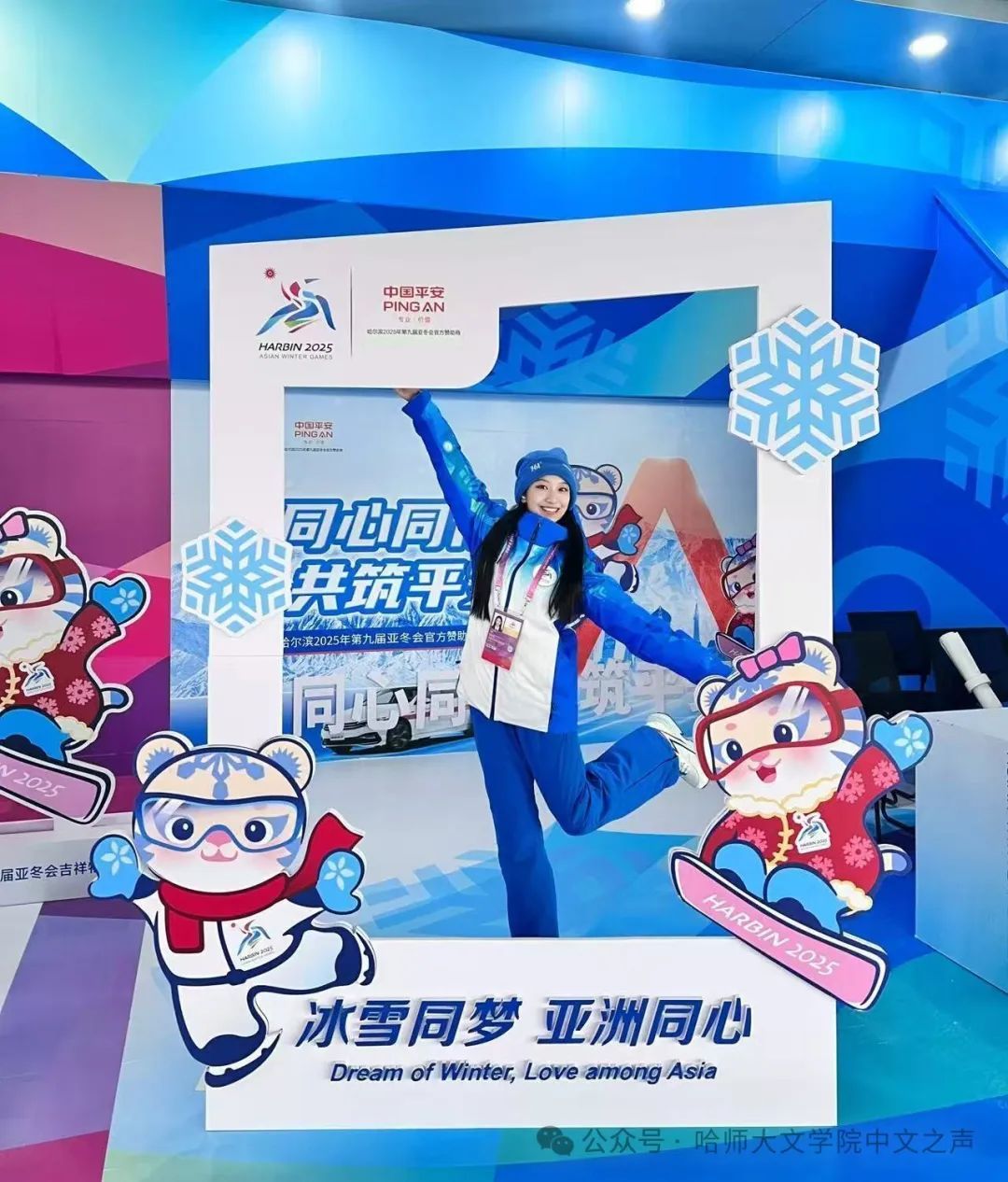 在这个寒冷的冬日里,李畅用她的笑容与舞步,为亚冬会增添了一抹亮丽的色彩。不仅展现了个人的魅力与风采,更是文学院精神风貌的一次完美诠释。以她为代表的志愿者们在服务亚冬的志愿实践中厚植家国情怀、感受冰雪体育魅力,向世界传递了一份来自东方的温暖与力量,让更多的人看到了中国青年积极向上、勇于追梦的精神风貌。